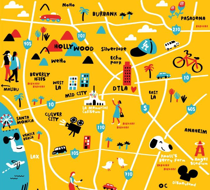 LA is BIG! We know. But here's a simple breakdown: LAX and the beach cities are west, Downtown is east, and the best neighborhood, West Hollywood (WeHo), is smack-dab in the middle.